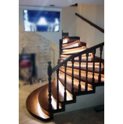 Pakāpienos iestrādāts LED apgaismojums.