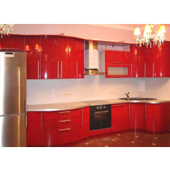 Sarkanas krāsotas pulētas virtuves skapīšu durvis.